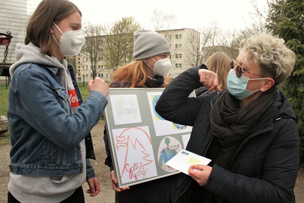 Der gewählte Entwurf wurde von Neele B. und Anna-Clara S., Schüler*innen der Klassenstufe 10, gestaltet. Wir gratulieren den Gewinnerinnen herzlich und wünschen ihnen viel Spaß mit ihrem Preis und der Aussicht bleibende Spuren an der Saaleschule